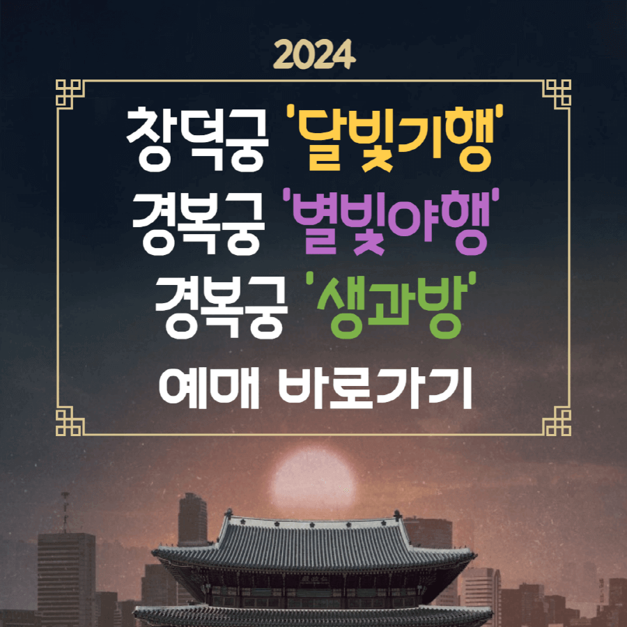 안타깝게 예매를 놓치신 분들은 예매 일정 보시고 2차 예매에 꼭 성공하셔서 은은한 달빛과 별빛 아래 우리 궁궐의 아름다움을 한껏 느껴보시고 다채로운 경험으로 소중한 추억 많이 만드시는 좋은 시간 가져보시기 바랍니다.